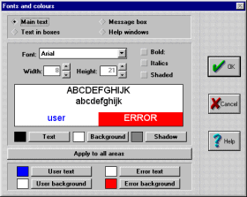 - Through the Fonts button that appears in activity edition (CTRL+E) the colours and fonts of the areas which show text or active contents can be changed.