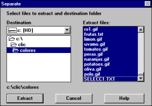 - Click on the Extract button. ClicPac will create the files as independent units in the working directory.