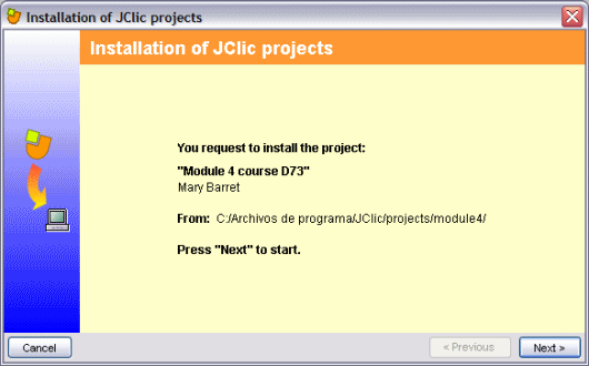 module4.jclic.inst. When you accept, the installation assistant for JClic projects will appear:
