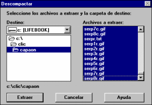 - Hacer clic en el botón descompactar. Aparecerá una ventana con la lista de los archivos contenidos en el archivo PCC.